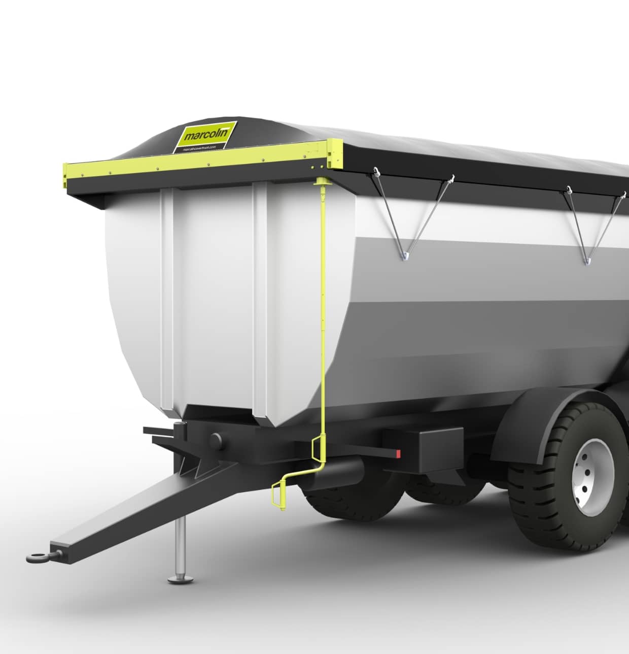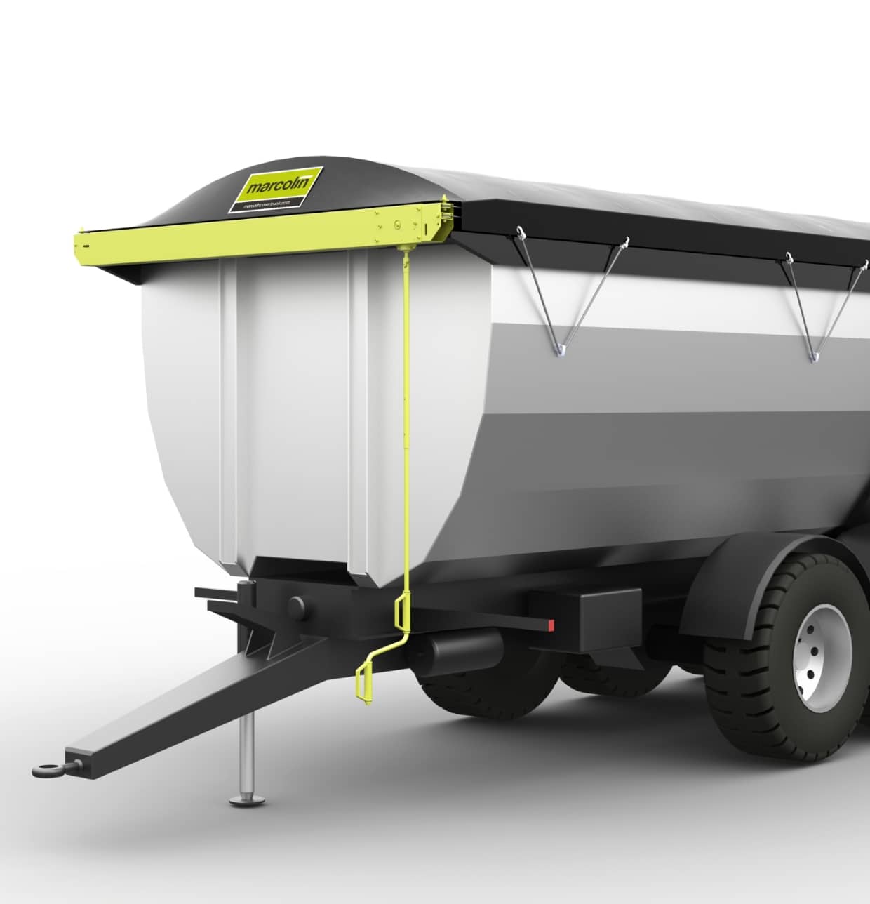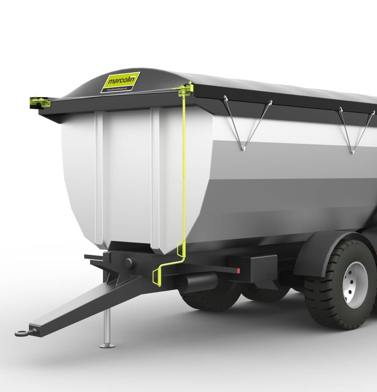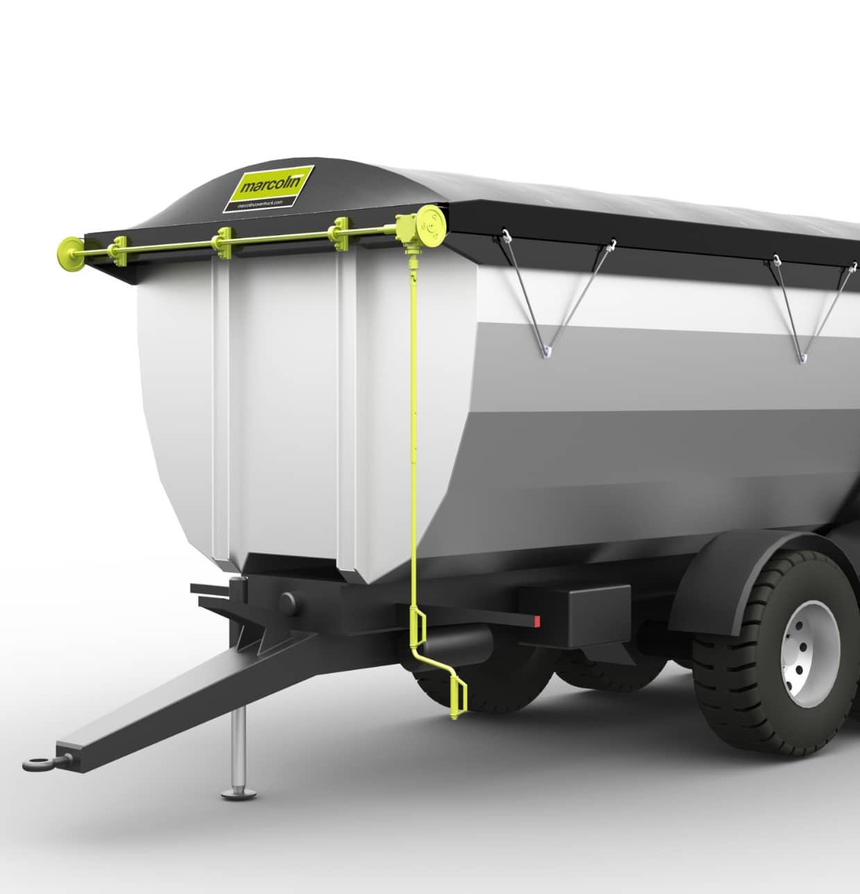 Sistema di copertura brevettato che si adatta alla maggior parte delle vasche presenti sul mercato. Per i ribaltabili Marcolin ha ideato e brevettato un kit premontato e regolabile, la cui profondità è di solo 8 cm, di grande robustezza, montato sul fronte della vasca con il minimo ingombro verso la cabina di guida. Grazie al sistema a “doppia corda incrociata” forte è la riduzione degli attriti sulle pulegge laterali che con gli archi sostenuti da pattini in resina autolubrificanti garantiscono una pratica e rapida manovrabilità.
