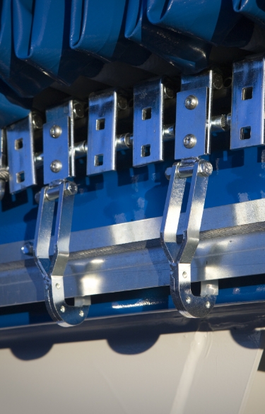 Il sistema antivento con agganci oscillanti permette di ancorarsi ai profili della cassa, se presenti, oppure alle GUIDE Z che trattengono la copertura anche quando è aperta, per tutta la sua lunghezza. Sono costruiti per essere utilizzati anche in casse che manifestano forte spanciamento a pieno carico e si adattano a tutte le casse che circolano in zone con forti venti.